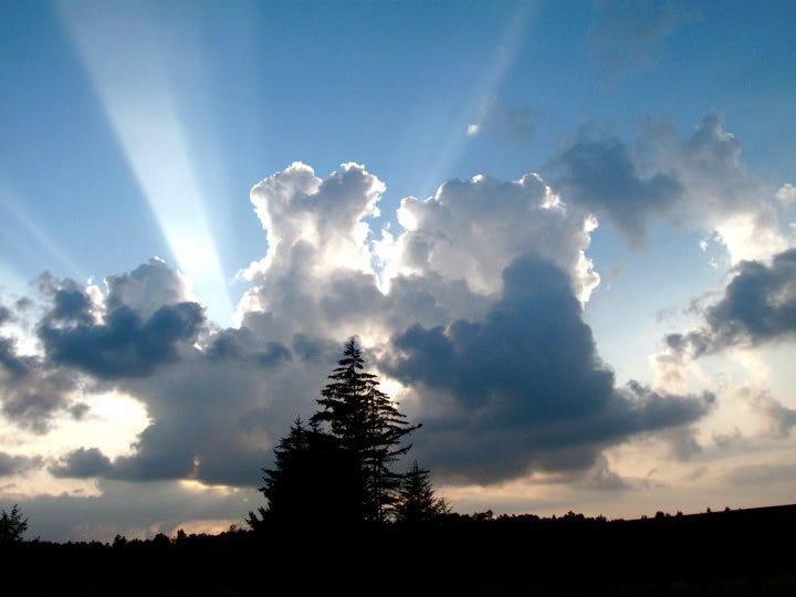 Sun Behind The Clouds at the center of our Journey Intensive Base Camp - Near Spruce Knob, West Virginia
